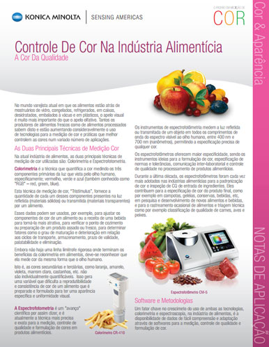 No mundo varejista atual em que os alimentos estão atrás de mostruários de vidro, congelados, refrigerados, em caixas, desidratados, embalados à vácuo e em plásticos, o apelo visual é muito mais importante do que o apelo olfativo. Tantos os produtores de alimentos frescos como de alimentos processados sabem disto e estão aumentando consideravelmente o uso de tecnologias para a medição de cor e práticas que melhor controlem as cores num variado número de aplicações.