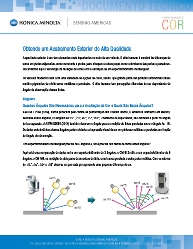 A aparência exterior é um dos elementos mais importantes no valor de um veículo. O olho humano é sensível às diferenças de cores em partes adjacentes, como carroceria e portas, para-choques e outras peças como retrovisores das portas e puxadores. Discutiremos aqui a tecnologia de medição de cores com a utilização de um espectrofotômetro multiangular.