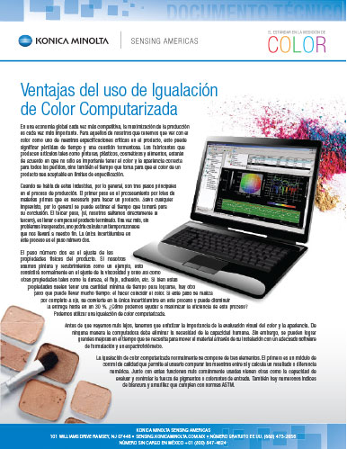 En la economía global actual, cada vez más competitiva, la maximización de la producción de productos es cada vez más importante. Para aquellos de nosotros que trabajan con el color como una de las especificaciones críticas de nuestros productos, esto puede ser un tema tedioso y lento. Para los fabricantes que producen artículos tales como pinturas, plásticos, cosméticos y alimentos no sólo es importante la consistencia del color y la apariencia de cada orden, sino también el tiempo en las mediciones de color para que un producto cumpla con las especificación establecidas. Este documento explica las ventajas del uso de la igualación de color computarizada.