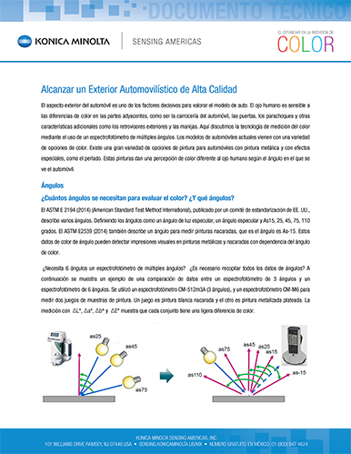 El aspecto exterior del automóvil es uno de los factores decisivos para valorar el modelo de auto. El ojo humano es sensible a las diferencias de color en las partes adyacentes, como ser la carrocería del automóvil, las puertas, los parachoques y otras características adicionales como los retrovisores exteriores y las manijas. Aquí discutimos la tecnología de medición del color mediante el uso de un espectrofotómetro de múltiples ángulos.